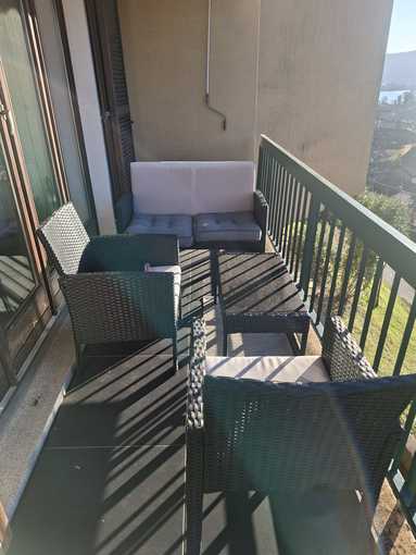 La zona notte offre due camere da letto, di cui una con suggestiva vista lago, che regala risvegli unici. Il bagno finestrato con vasca idromassaggio completa l’abitazione, offrendo uno spazio dedicato al benessere e al comfort quotidiano.